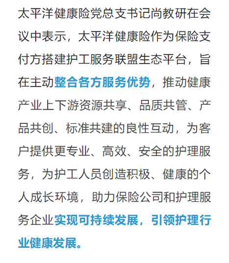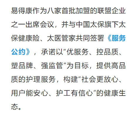 > 行業(yè)新聞 > 【要聞】易得康加入太平洋保險(xiǎn)護(hù)工服務(wù)聯(lián)盟,并作為入盟單位代表受邀發(fā)言