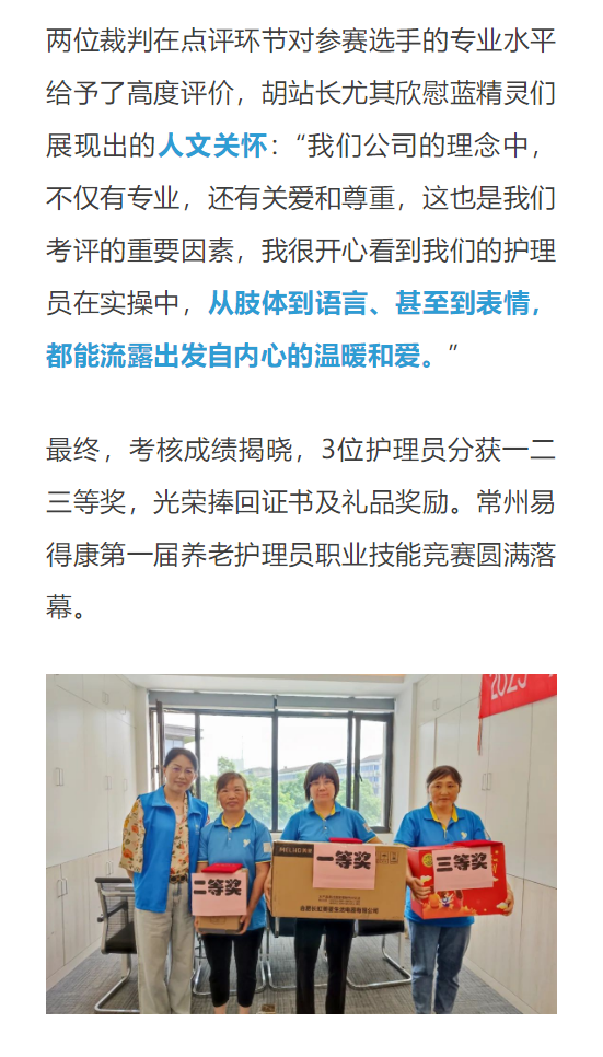 > 公司動(dòng)態(tài) > 【常州】技能成才,匠心筑夢(mèng)——常州易得康養(yǎng)老護(hù)理員職業(yè)技能競(jìng)賽圓滿舉行
