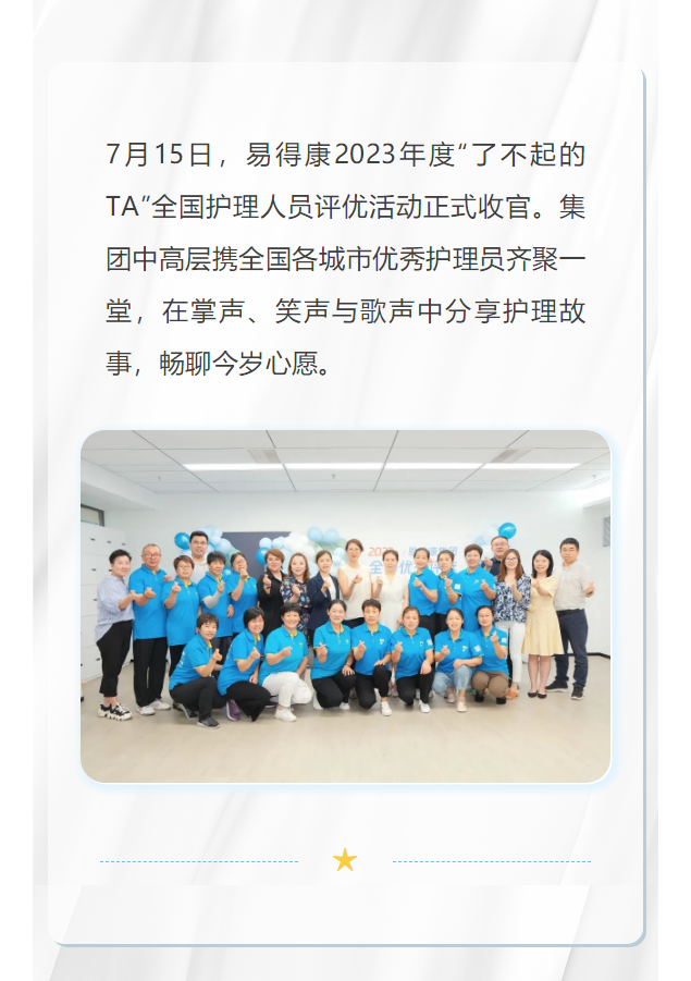 【活動】易得康2023年度“了不起的TA”全國護理人員評優(yōu)活動圓滿落幕!