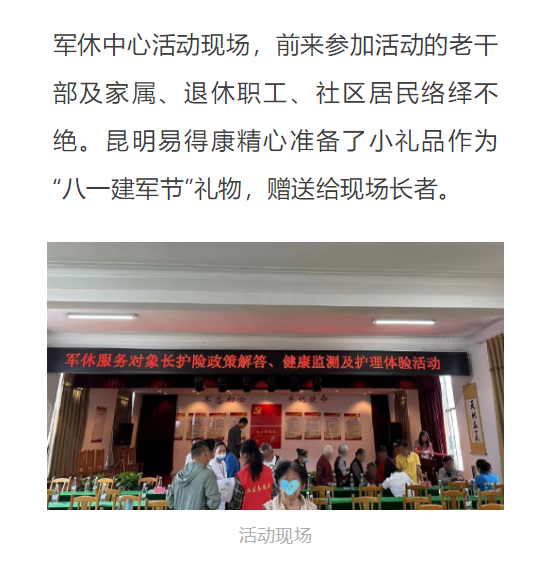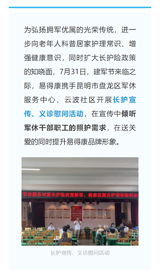 【昆明】易得康攜手軍休所,開展長護(hù)宣傳、義診慰問等公益活動
